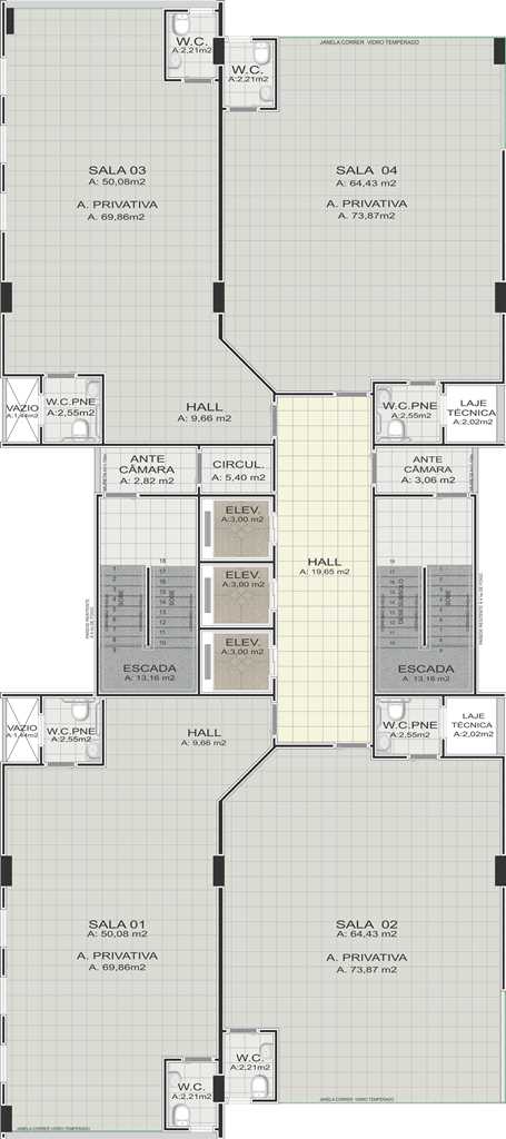 Áreas privativa das salas (Pavimento tipo):