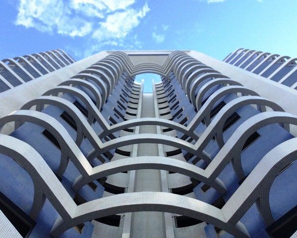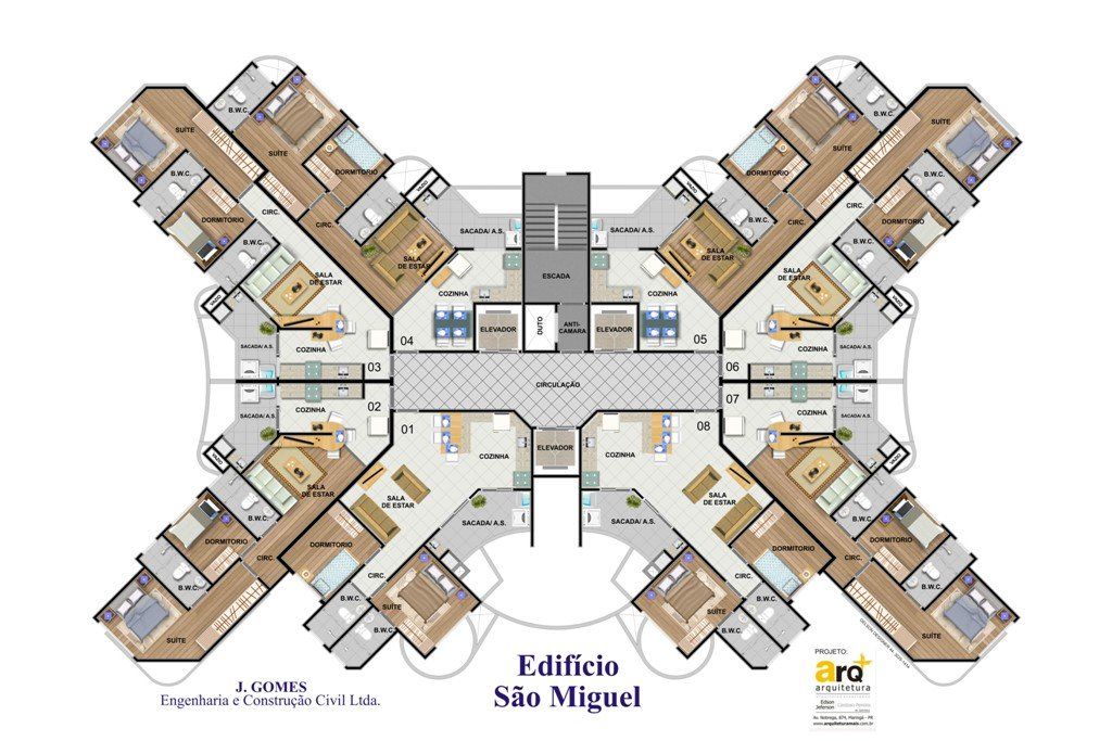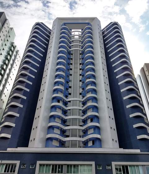 Edifício de 25 pavimentos, 128 unidades residenciais, 24 salas comerciais e 222 vagas de estacionamento.