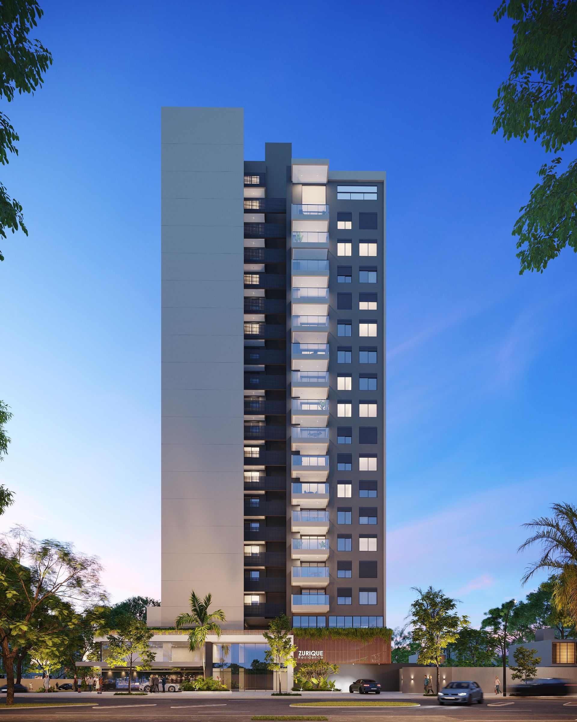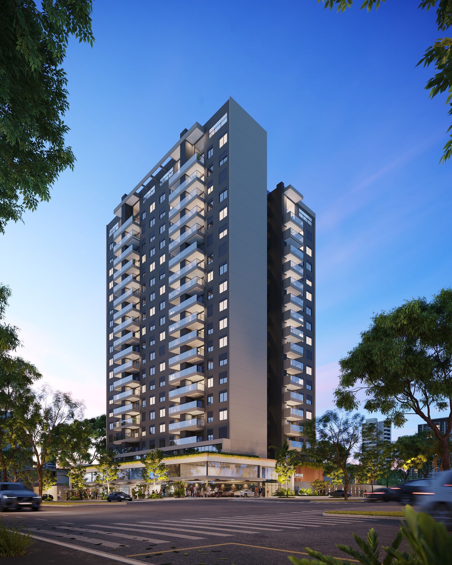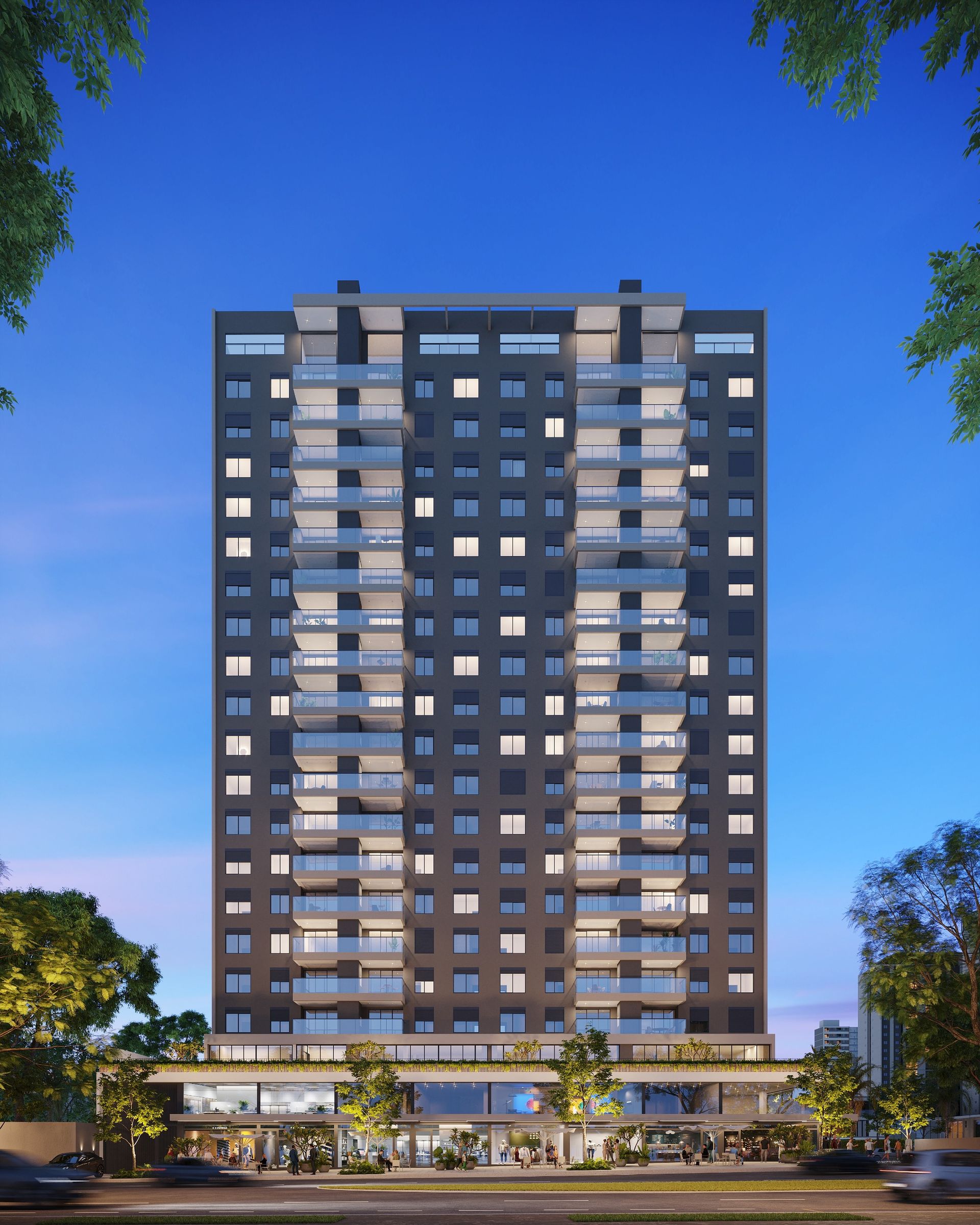 Edifício residencial e comercial com 20 pavimentos e 4 subsolos.